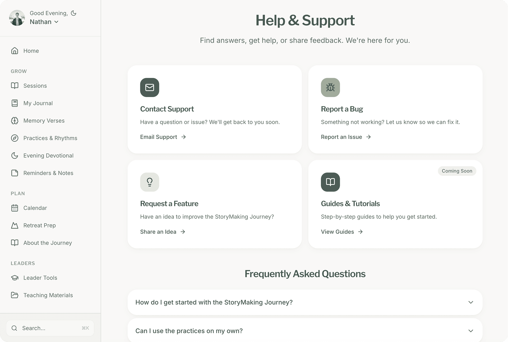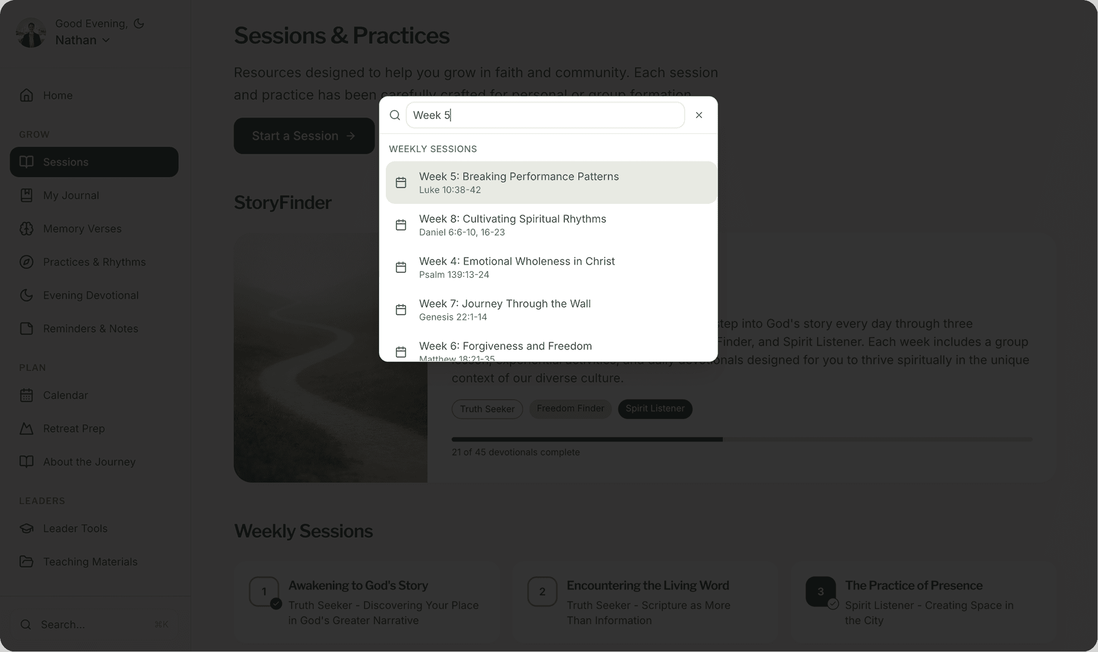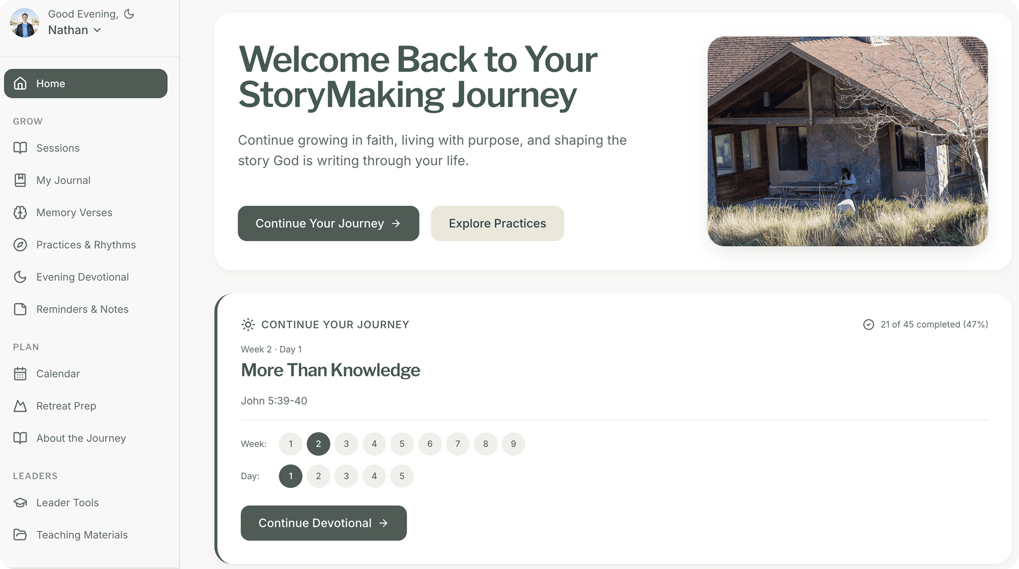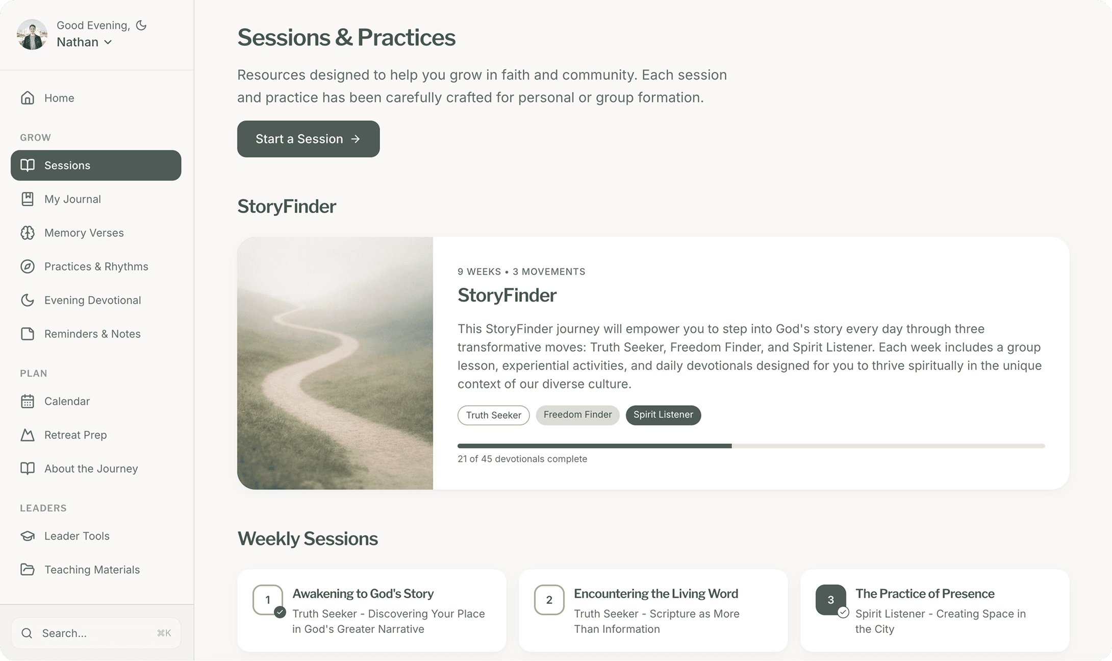StoryMaking Journey is a digital platform designed to guide users through a 9-week discipleship experience with daily practices, reflection, and progress tracking.