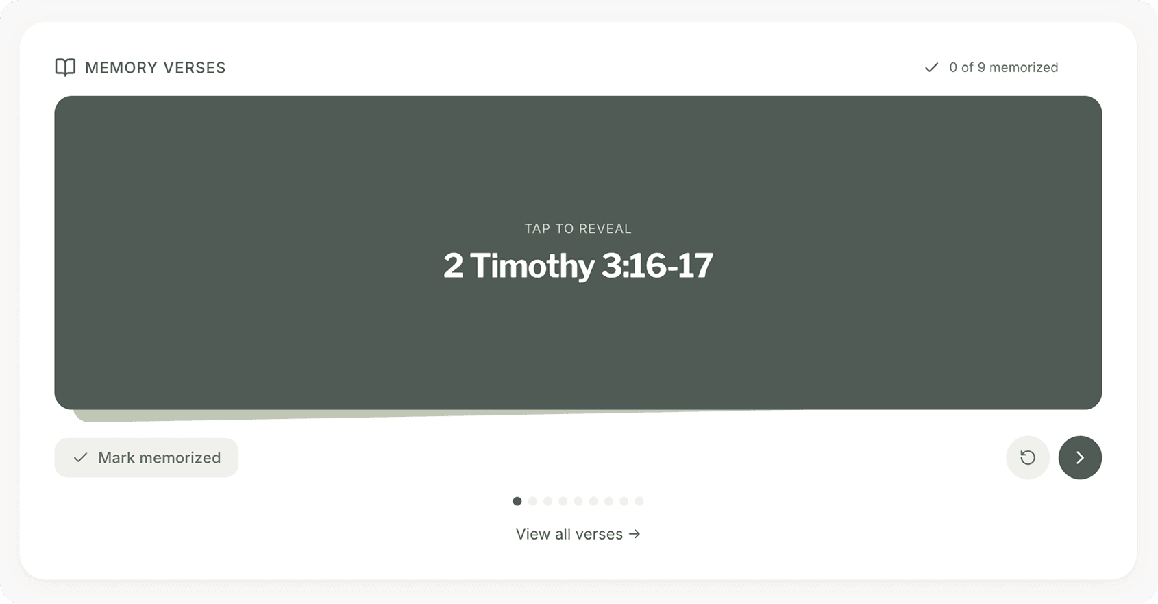 Users can see where they are in the journey, reinforcing consistencyMemory verse system